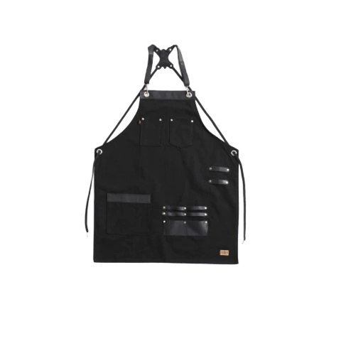 This stylish and durable apron is made from high-quality gabardine fabric, offering comfort and resistance. Its sleek black design is perfect for chefs, artisans, or enthusiasts looking for a professional and elegant look.